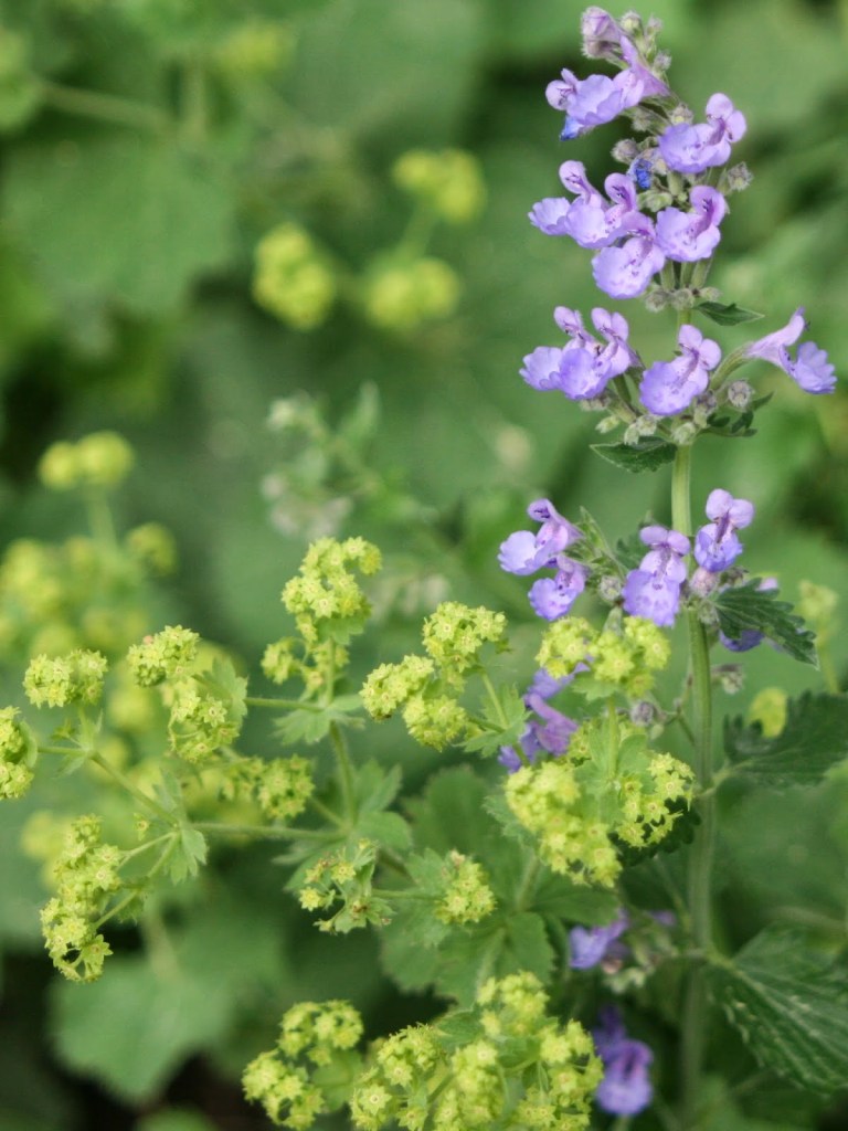 As an example, if you planted Geranium ‘Roxanne’, Salvia ‘May Night’ and Ceratostigma together, the blues and purples will all blend together with none standing out, but if you planted the same Salvia ‘May Night’ with a ‘Happy Returns’ Daylily, both the purple of the Salvia and Yellow of the daylily will pop in contrast.