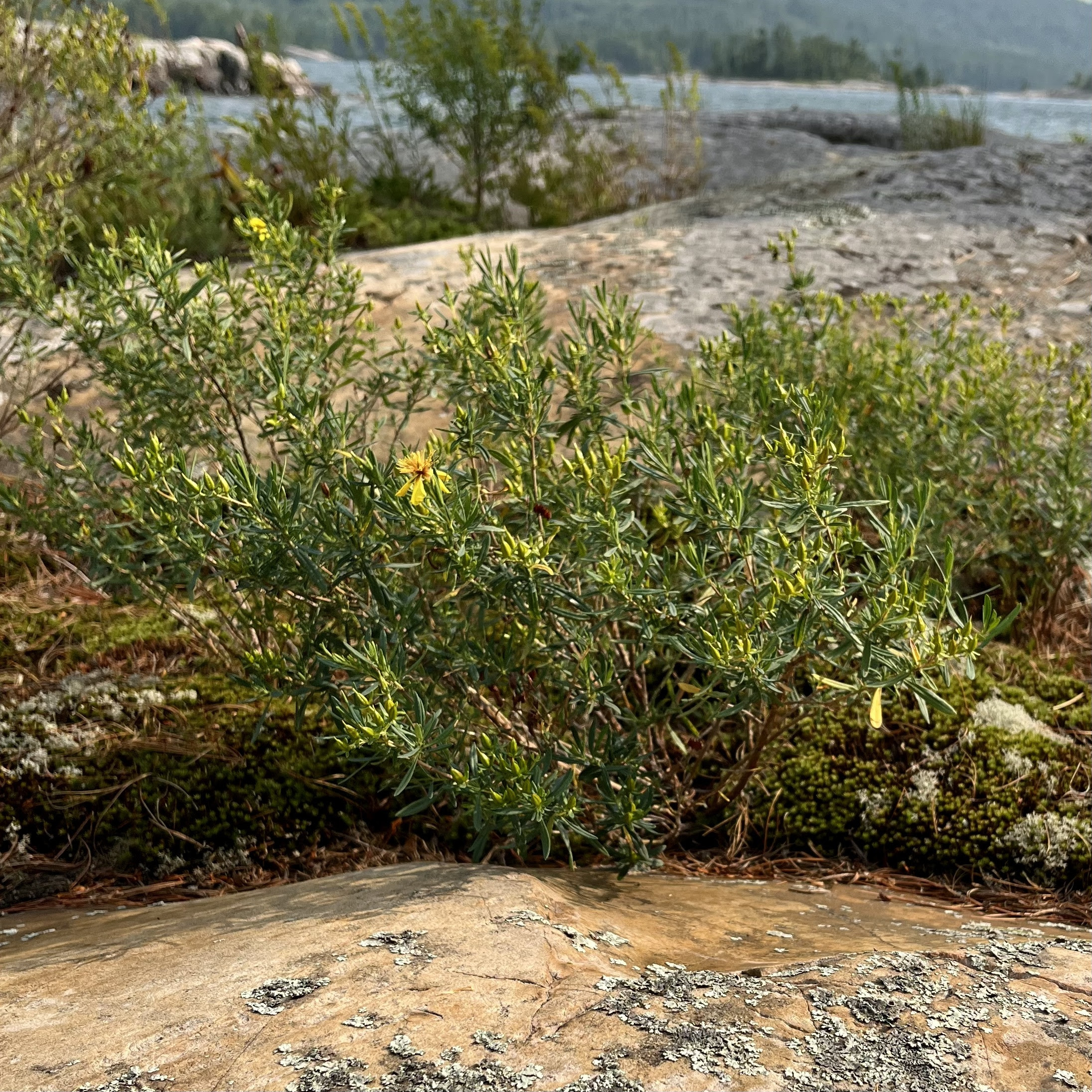 Shrubby St John’s Wort (Hypericum prolificum) growing out of a rock crack that is filled with Moss. Great pollen producing plant that attracts insects that feed the birds, and then the seeds feed the birds through the Winter. Part of that interwoven system of plants, insects, birds, and animals that I have discussed in the past when covering the importance of biodiversity. Finally, on the right, my last plant is the ubiquitous Lowbush Blueberry (Vaccinium angustifolium). This is big business in this part of Canada and locals are always off in the woods harvesting berries to sell on the road or in markets. These thrive in the very acidic soil and under the pine trees. They are, quite literally, everywhere. The defining ground cover in Ontario.