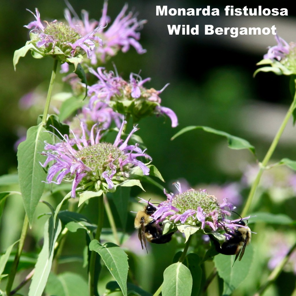 Wild Bergamot (Monarda fistulosa) – Tall plant with unique whorls of lavender flowers. Sun to part shade in average to moist soil. Flowers attract huge range of pollinators including bees, butterflies and hummingbirds. Plant height 4’ – Plant width 3’ – Seed Count = 50 or so