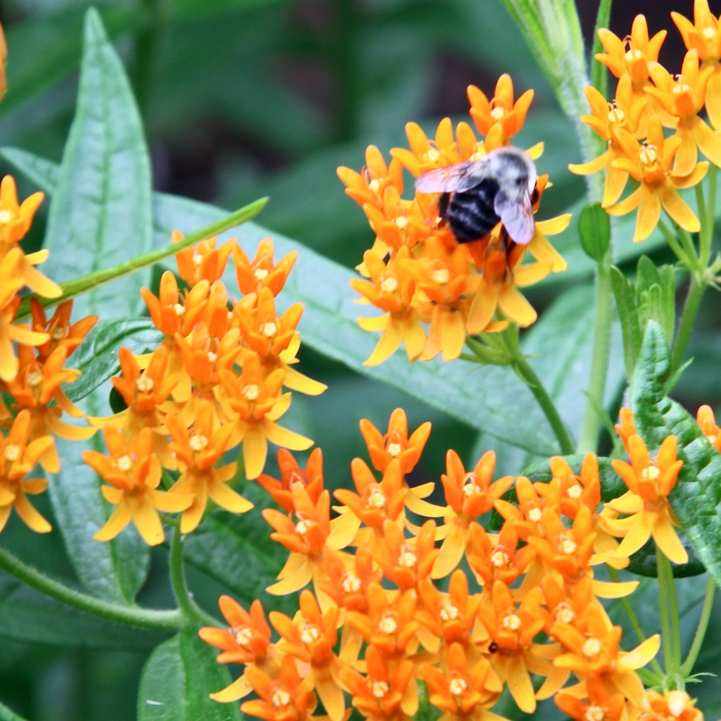 SOLD OUT Butterfly Weed (Asclepias tuberosa) – Brilliant orange flowers in early Summer that continue into September on this pollinator magnet with huge nectar supplies. Host plant for butterflies and resource for many. Plant height 2’ – Plant width 2’ – Seed Count = 50 or so