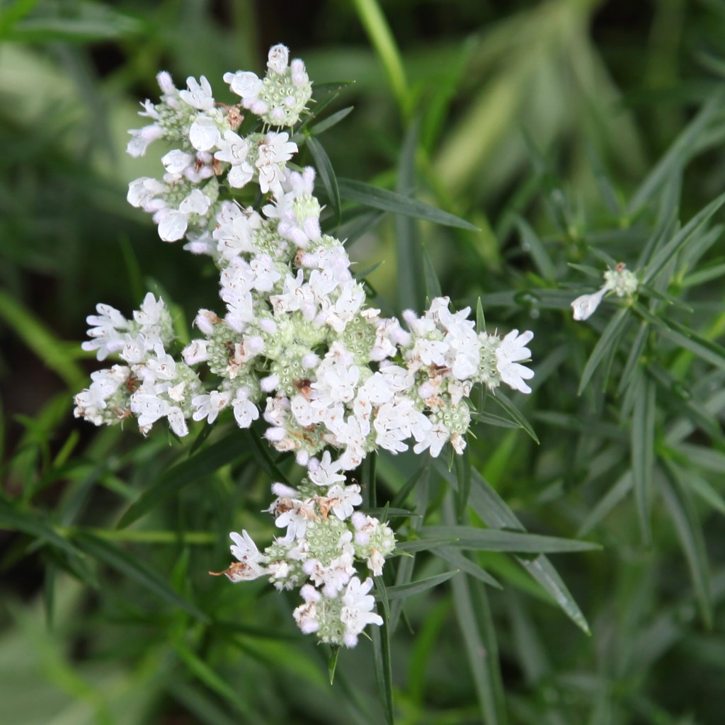 Slender Leaf Mountain Mint (Pycnanthemum tenuifolium) – Clusters of small white/purple flowers in Summer and late-Summer on clumping smaller plant. Prefers full to partial sun and drier soils. Huge provider of nectar for wide range of pollinators. Plant height 2’ – Plant width 2’ – Seed Count = 50 or so