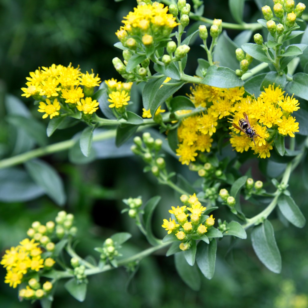 SOLD OUT Stiff Goldenrod – (Oligoneuron rigidum) – Tall plants with flat clusters of yellow flowers in Summer to Fall. Average moisture soil in sun to part sun. Huge provider of nectar and pollen that are covered in insects. Fall red foliage. Plant height 4’ – Plant width 2’ – Seed Count = 50 or so
