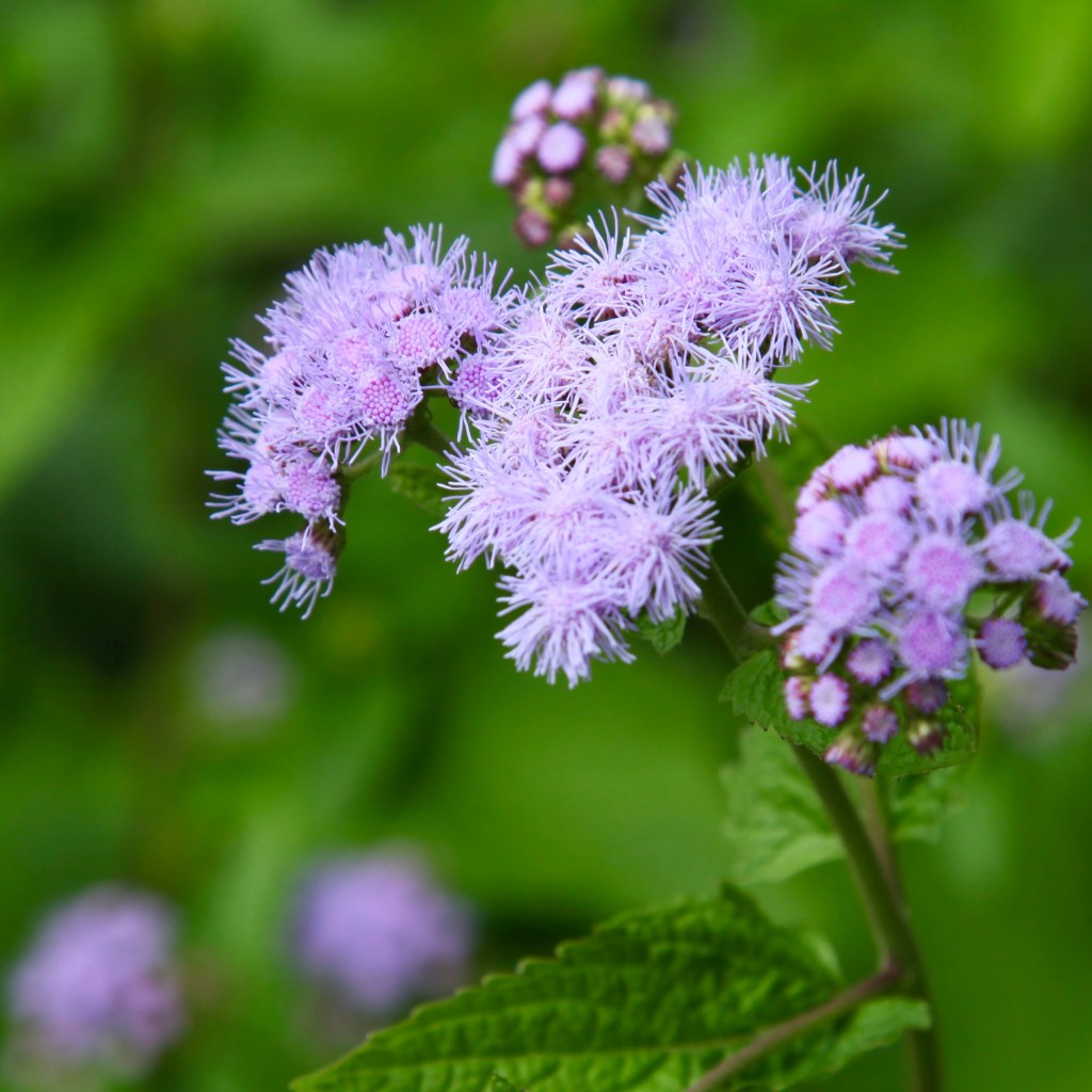 Blue Mist Flower – (Conoclinium coelestinum) – Late Summer to frost clusters of fuzzy blue flowers that provide important nectar and pollen for overwintering insects in part sun. Late food source for migrating Monarch Butterflies. Plant height 2’ – Plant width 2’ – Seed Count = 50 or so