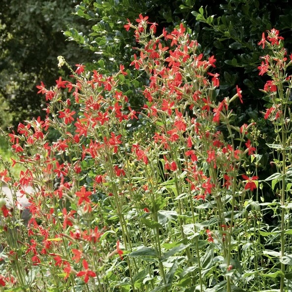 Royal Catchfly – (Silene regia) – Brilliant red flowers in mid-Summer draw Hummingbirds and Butterflies. Full to part-sun in average to dry soil. Native to mid-West but serviceable for many pollinators. Plant height 4’ – Plant width 2’ – Seed Count = 25 or so